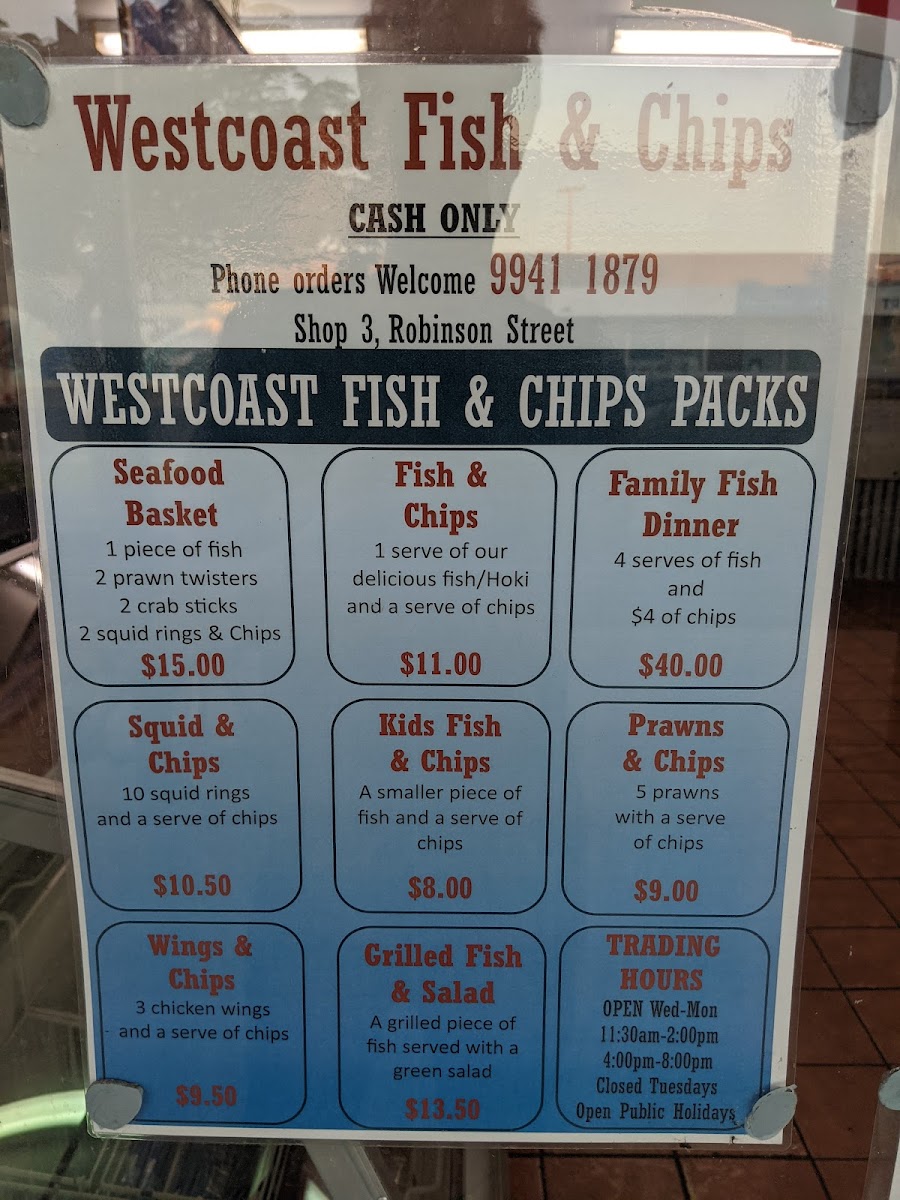 Nestled in the heart of Carnarvon at 41 Robinson St, Westcoast Fish & Chips is a local favorite for anyone craving a classic takeaway experience. From the moment you step in, the aroma of freshly fried fish and golden potato scallops fills the air, promising a meal that’s both comforting and satisfying. This spot has earned a reputation not just for its signature dishes, but for its friendly, no-fuss service that makes grabbing a quick bite feel effortless.